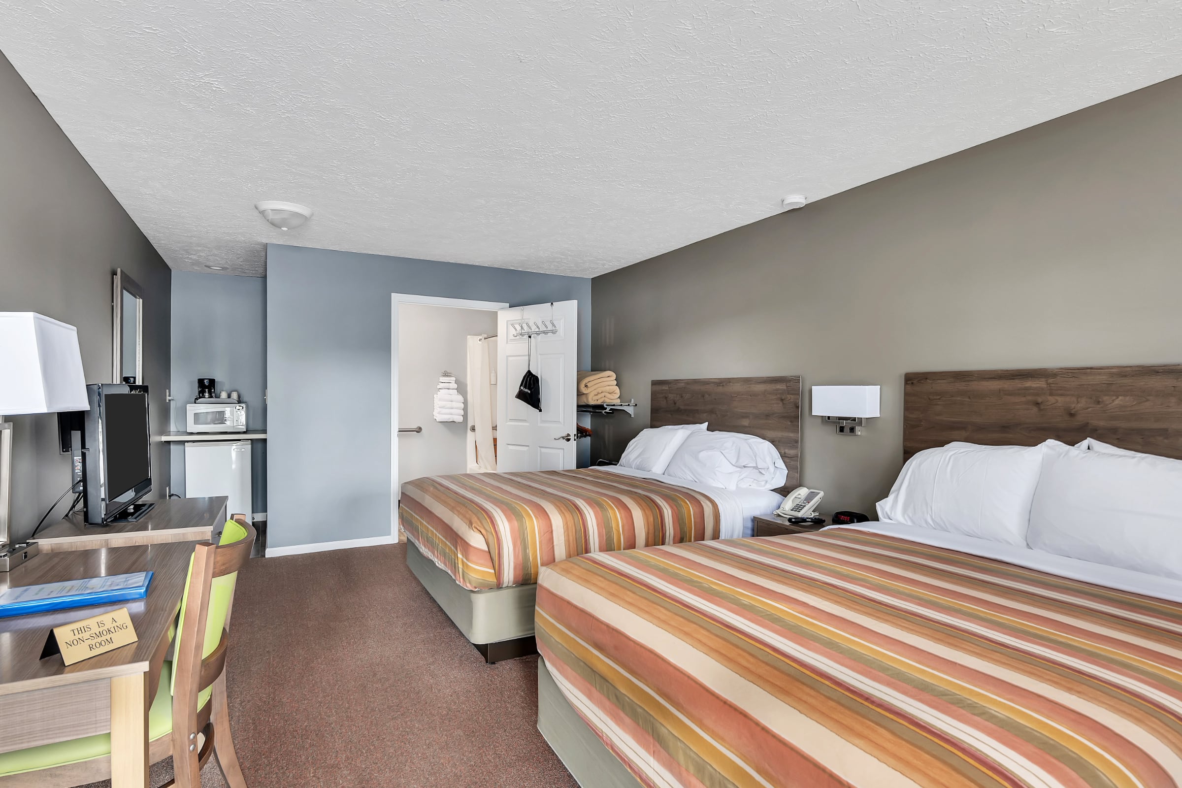 The motel features all Queen beds and three handicapped-accessible rooms.